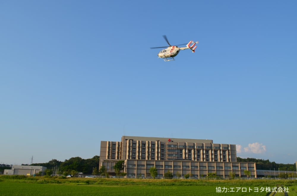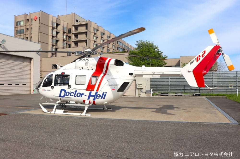 搬送時間の短縮だけでなく、医師がいち早く患者さんに接触でき、搬送中も医師による観察・処置が可能であることが特徴です。このことにより、救命率の向上や後遺症の軽減に大きな効果が期待されています。