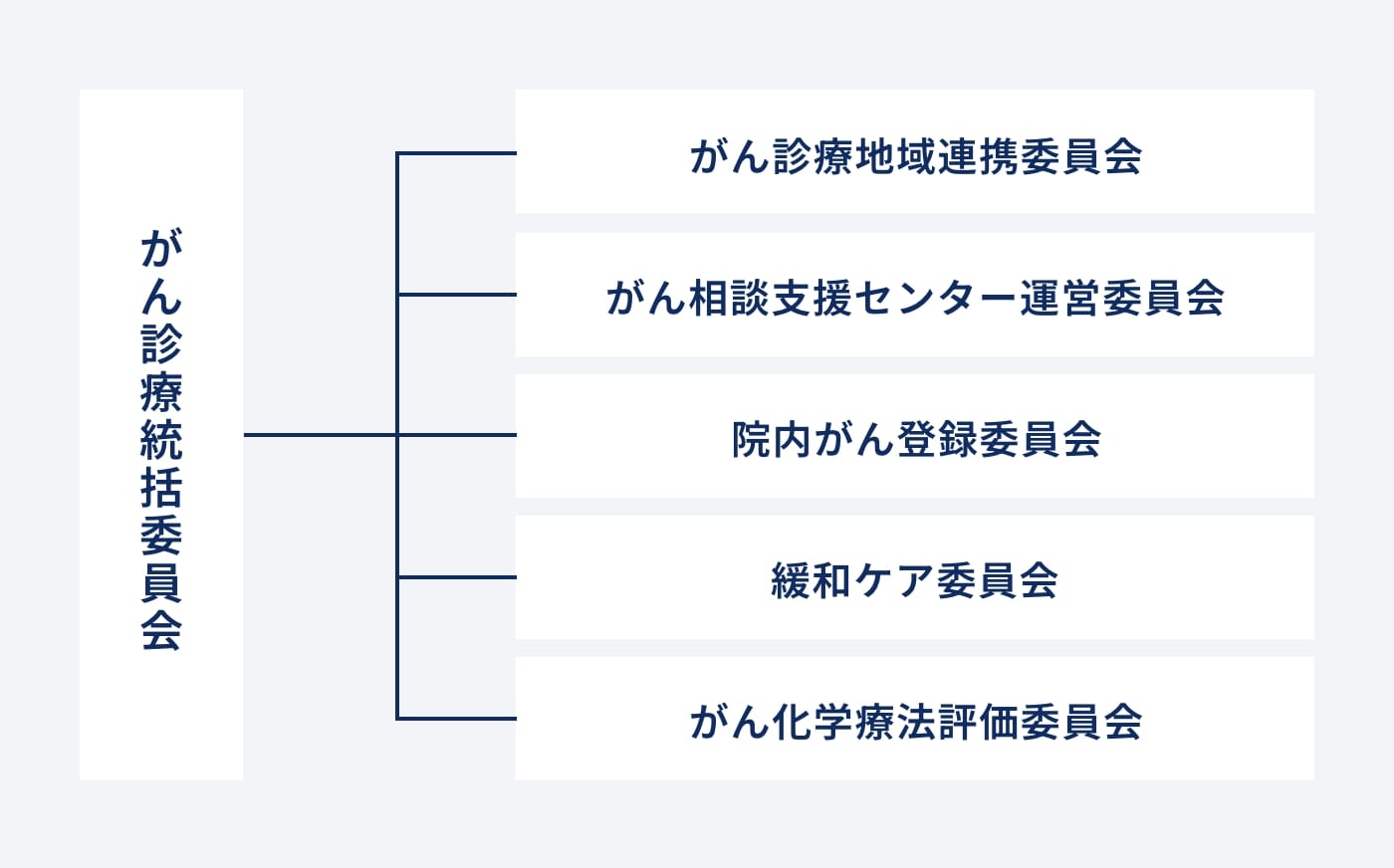 当院では、がん診療を行うにあたり、院内に各種委員会を設置し、診療機能や診療実績等について把握・評価を行っております。