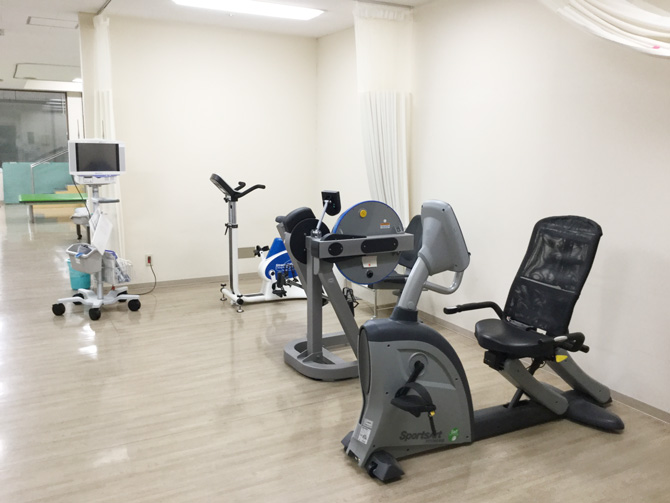 膝筋力測定訓練器、自転車エルゴメーター、鉄亜鈴、重錘バンド、超音波治療器、低周波治療器、過流浴装置、気泡発生装置 他