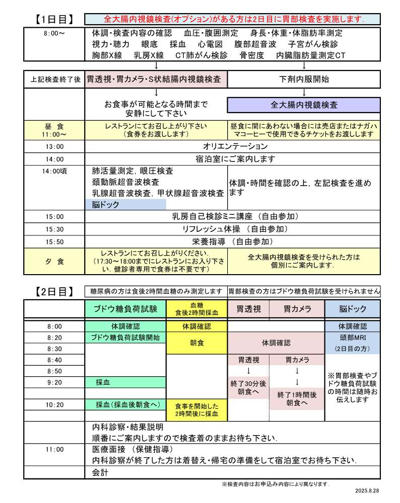 二日(宿泊)ドック 日課表